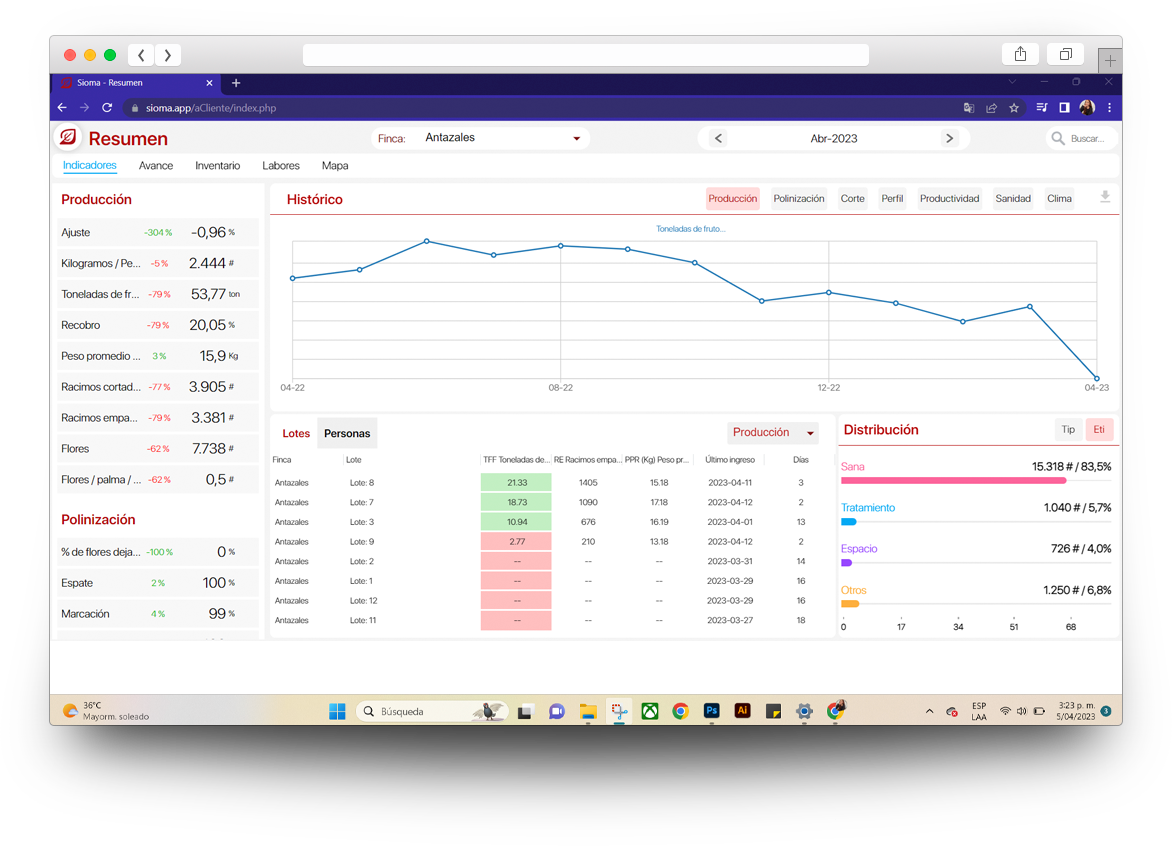 Você poderá consultar gráficos mês a mês com todos os dados relevantes sobre o desempenho de suas colheitas em nosso aplicativo móvel e na Web.